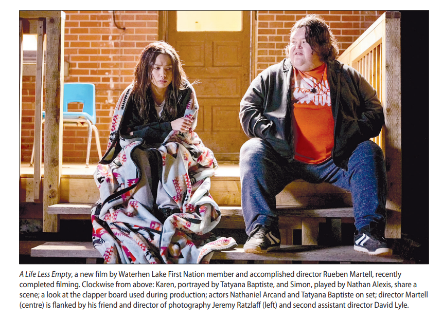 A Life Less Empty stars Tatyana Baptiste (Sweet Summer Powwow) as Karen, Nathan Alexis (Reservation Dogs) as Simon and Nathaniel Arcan (Elektra) as Uncle. “We also had little cameos from people like Leo Farfard (WolfCop) and others,” Martell added. “They were all great to work with.” Once edited, Martell plans to take the movie on the film festival circuit. It is yet to be determined when and where the film will be released to general audiences. “Now, I’m working on another film called Tied,” Martell said. “It’s a horror film that takes place in a child and family service. We’re working on some markets right now and hope to begin to filming next year.”