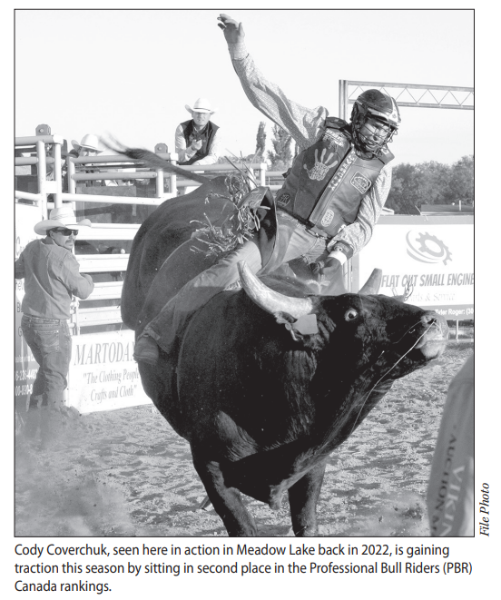 “It’s been kind of a different year for me so far – I’ve been riding a few bulls, but not all of my bulls,” Coverchuk said. “I’ve been placing on every event, but not winning. Things have been OK, but, now, heading into the summer run, things will definitely pick up. My goal is to ride to the best of my ability and to start picking up some wins.” As of press time, Coverchuk had entered four PBR Canada events in 2026 and has placed in all but one of them, starting the season a strong 5-for-8. He’s currently ranked second overall in Canada. “But, I am always looking to be number one for sure,” he added. In addition to PBR Canada, Coverchuk also competes in the Canadian Professional Rodeo Association (CPRA) and Bull Riders Canada (BRC). This past weekend, he competed in three BRC events while this coming weekend he will be competing at an event in Moose Jaw.